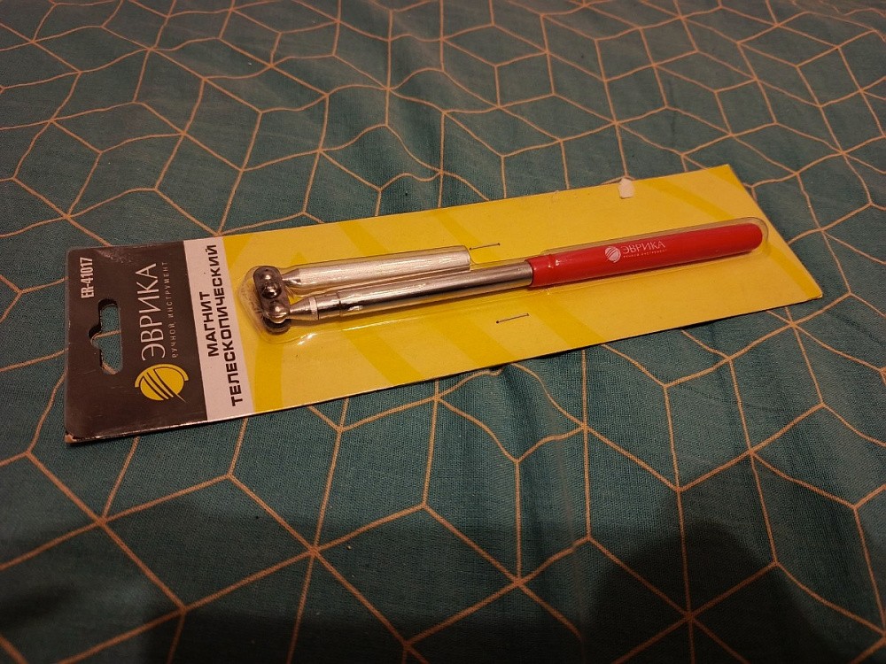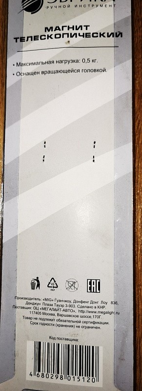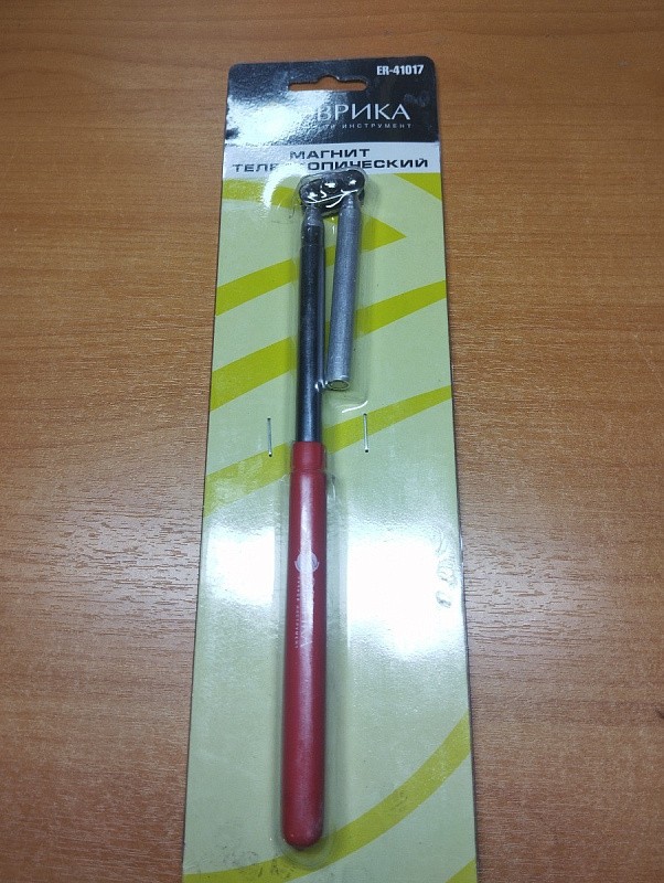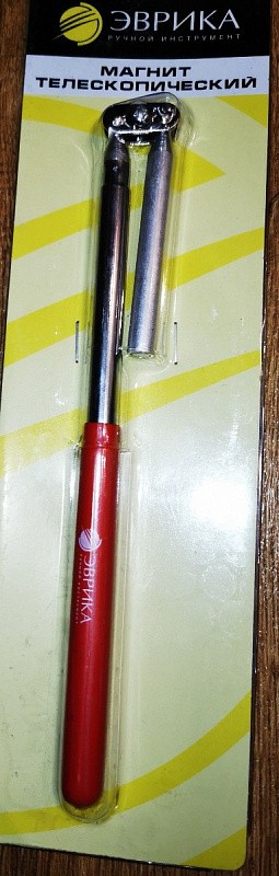 - Магнит ER-41017, телескопический, с вращающейся головкой, до 0,5 кг, max. длина 44,3 см, позволяет извлечь металлические детали из заглубленных или труднодоступных пазов и выемок.