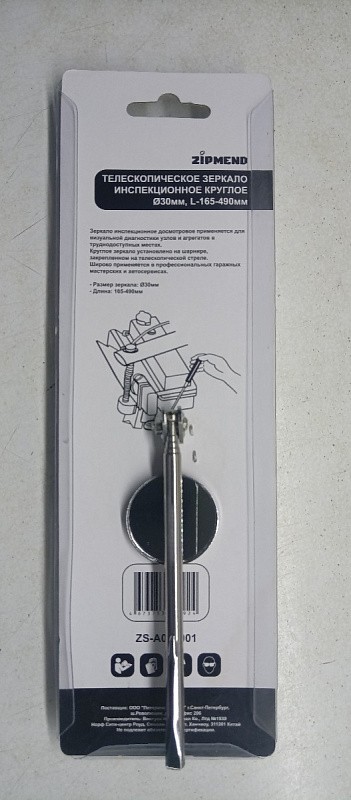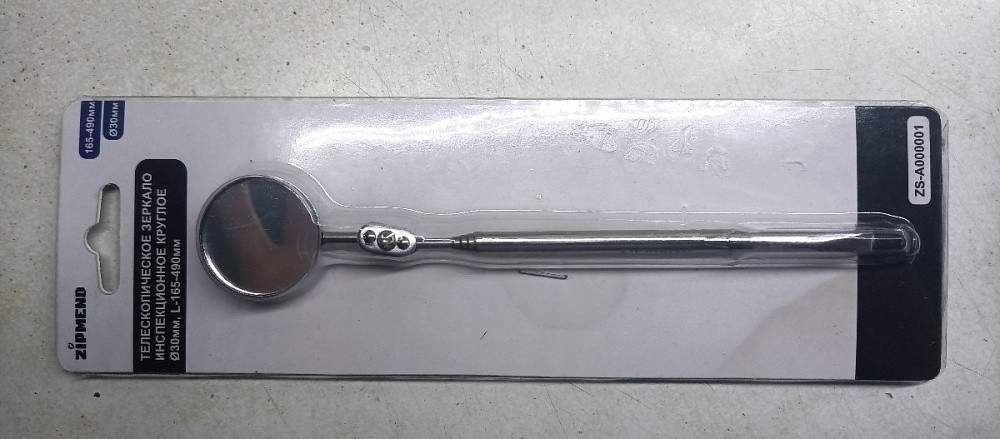 Размер круглого зеркала: Ø30 мм. Общая длина зеркала с телескопической рукоятью из 5 секций - 165-490 мм.