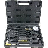 Инструмент позволяет осуществлять замер компрессии через свечное отверстие и через отверстие дизельной форсунки. Наличие адаптеров с различной резьбой позволяет использовать набор для многочисленного парка дизельных автомобилей.